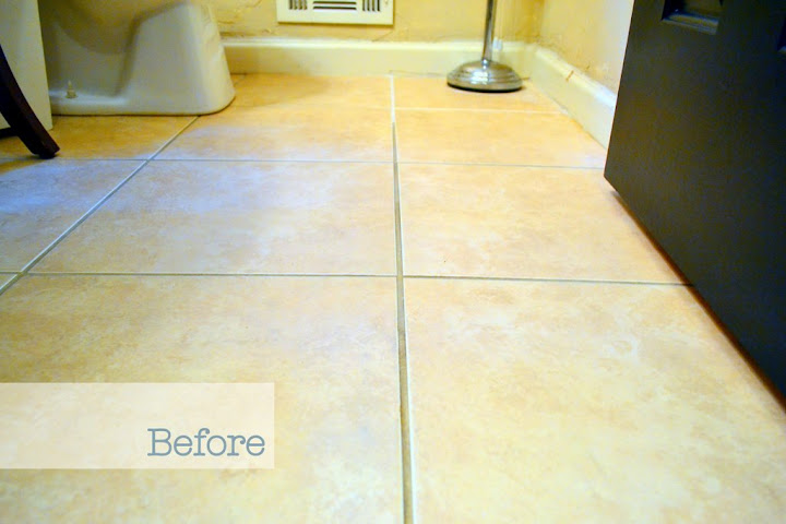 This is a simple project that came about due to an accident. We had a broken tile in the half bath and once it was replaced and regrouted, we realized the grout from our kitchen backsplash was used by accident. The light gray grout used in the kitchen was a stark contrast from the darker grout used on the bathroom tile floor.